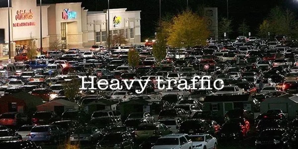 2) Refers to heavy traffic and people going to town to shop: 形容黑压压的车流和人潮,涌入市区购物